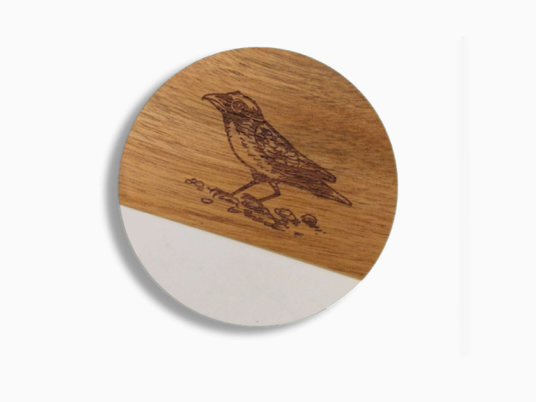 Posavasos de madera de acacia con detalle en extracto de mármol